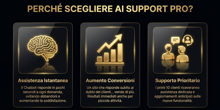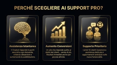AI SUPPORT PRO® rappresenta il futuro dell’assistenza clienti online, perché trattenere un utente, aiutarlo nel momento giusto e risolvere il suo problema direttamente sul sito non è solo supporto: è valore reale, misurabile e duraturo.