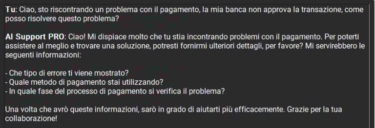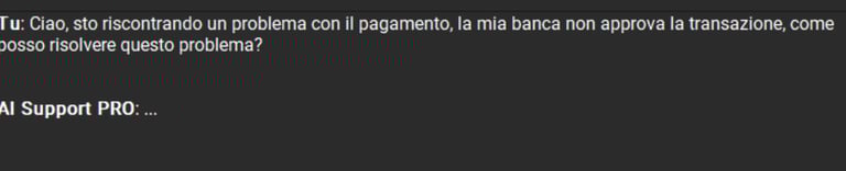 AI SUPPORT PRO® progettato per l'assistenza clienti rappresenta una soluzione innovativa per migliorare l'esperienza degli utenti sul sito. Grazie alla sua intelligenza artificiale, è in grado di rispondere rapidamente alle domande frequenti e di risolvere problemi comuni che potrebbero portare all'abbandono del servizio. Gli utenti, possono interagire con il chatbot in modo semplice e intuitivo, ricevendo supporto immediato per questioni tecniche o di navigazione. Questo approccio non solo aumenta la soddisfazione del cliente, ma riduce anche i tempi di attesa per le risposte, consentendo un utilizzo più fluido del sito. Investire in un chatbot per l'assistenza clienti significa garantire un servizio efficace e accessibile, contribuendo così a mantenere gli utenti attivi e coinvolti.